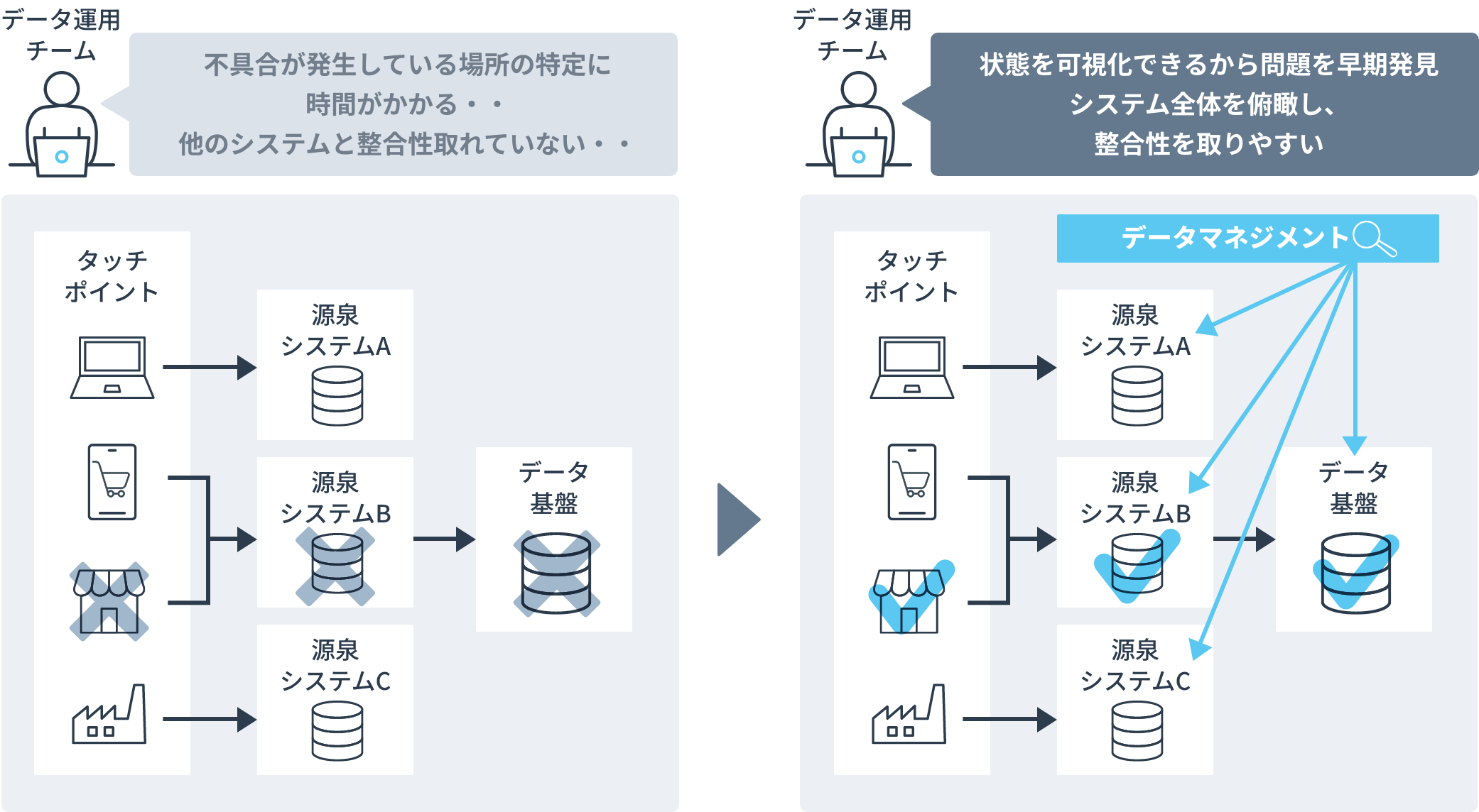 - 複数システム間でのデータ品質に関する問題を把握し、素早く改善できた