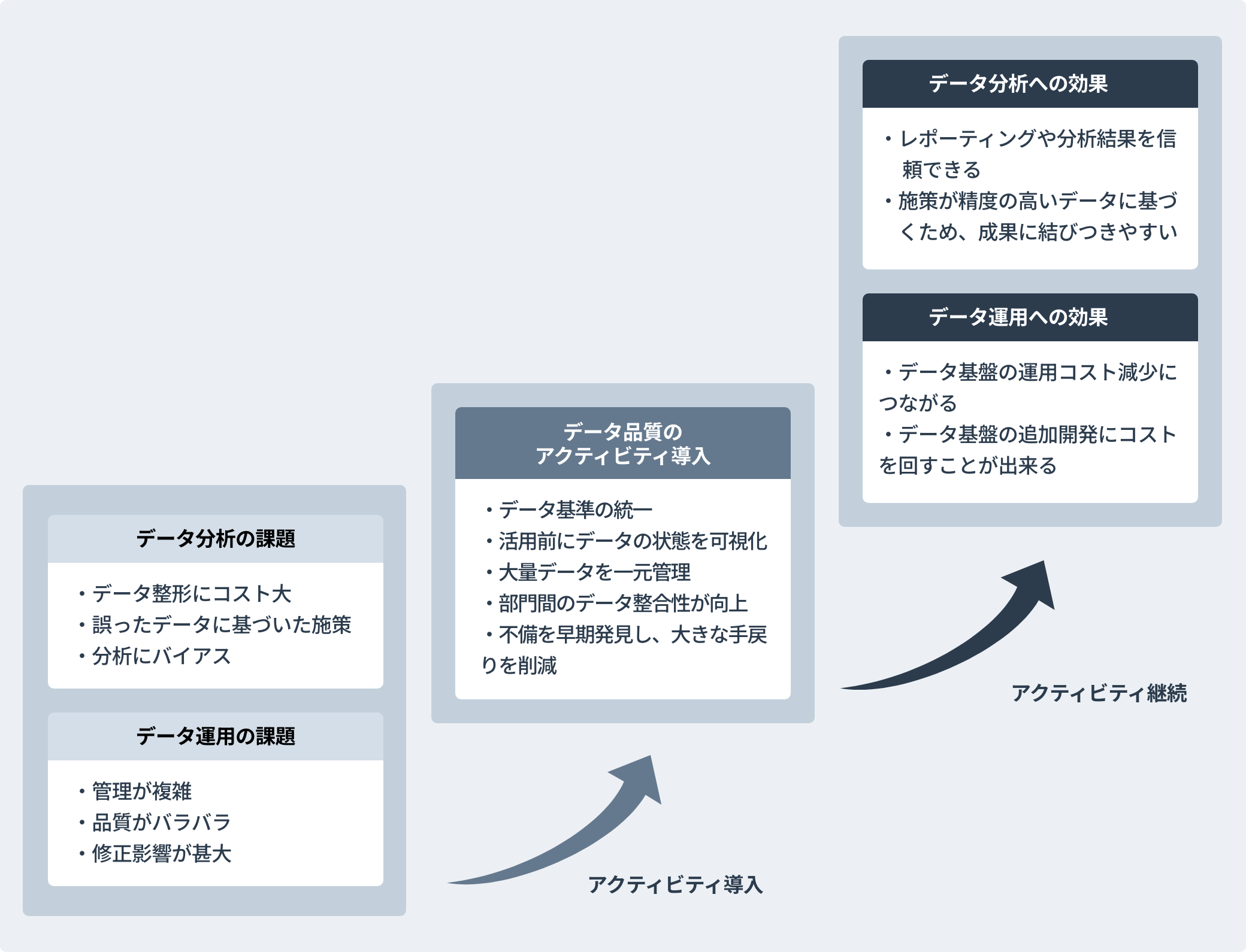 データ品質のアクティビティを導入し継続することで、全社的なパフォーマンス改善が期待できます。