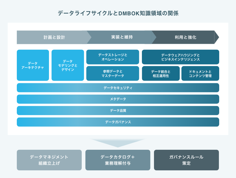 *DMBOKは全世界のデータ専門家のための国際的な非営利団体であるData Management Association International(DAMA-I)がまとめたデータ管理の入門書でデータから価値を生み出す方法が解説されています(データガバナンスを中心に11の知識領域が定義され、効果的で一貫性のある活動を行うための指針となっています)