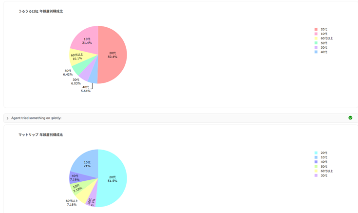 このようにチャットベースで会話を進めながらアドホックな分析ができる点も、AIエージェントの魅力といえます。