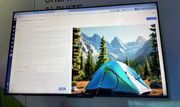 画像やメール本文等コンテンツを作成する機能です。デモでは関連キーワードに合わせて画像を自動生成したり、文体をユーザーに合わせて調整し、より親しみやすいトーンへ変換することも可能でした。