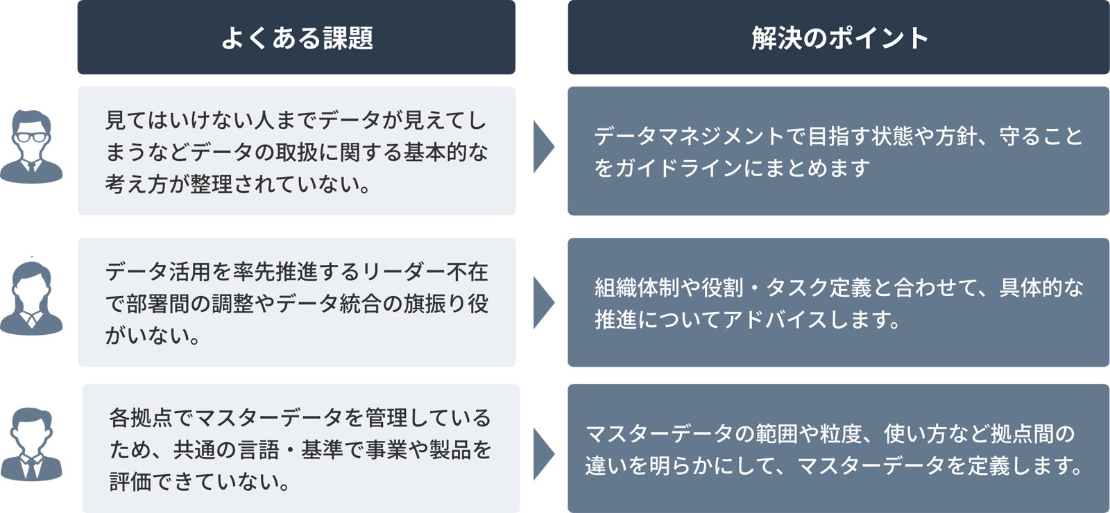 ガイドライン作成やデータ定義、データ運用プロセスの整備を通じて、持続可能な体制を構築