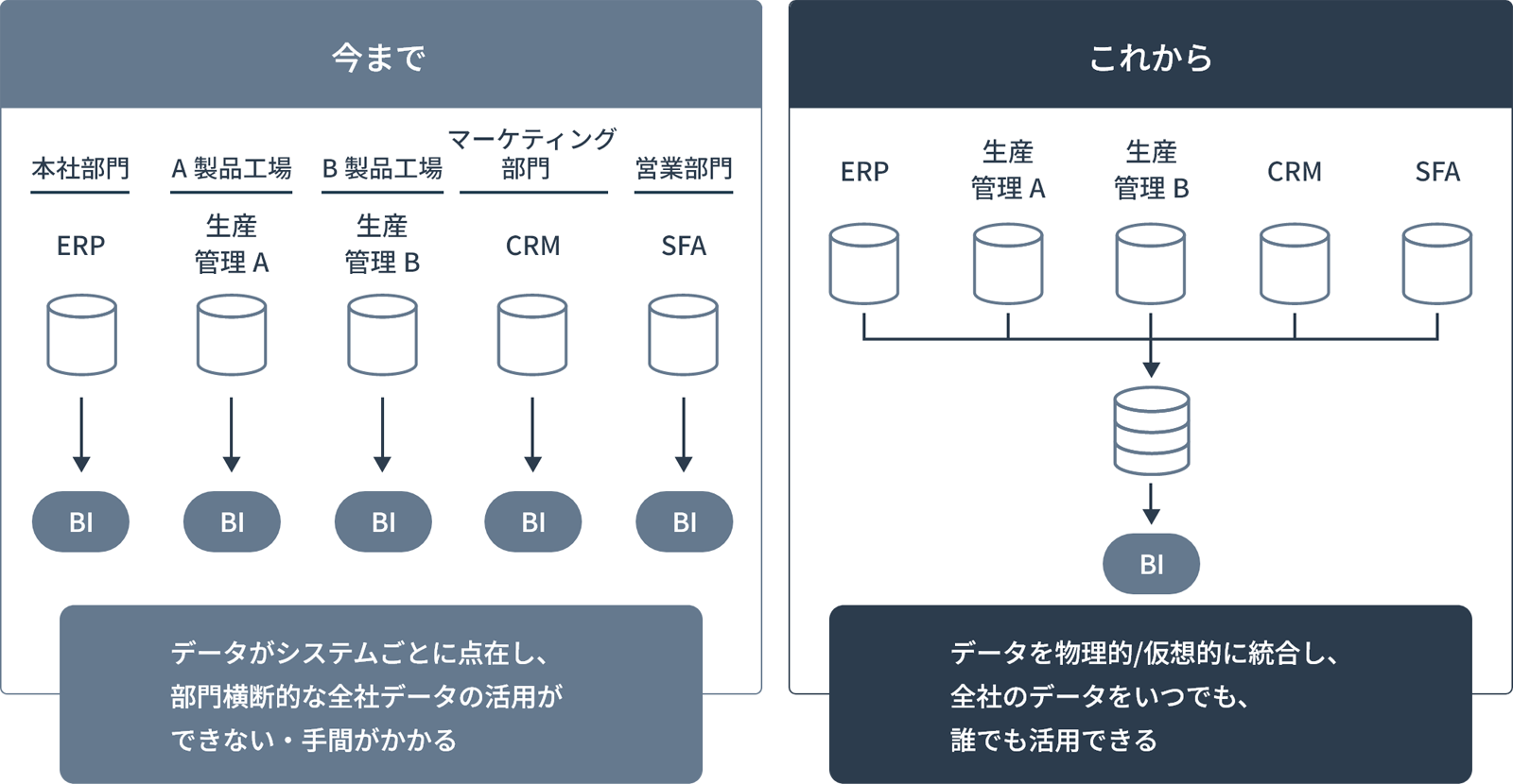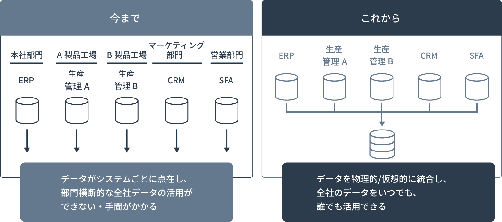 企業のデータサイロ化を解消し、全社・グループ全体でのデータの活用を促進します。